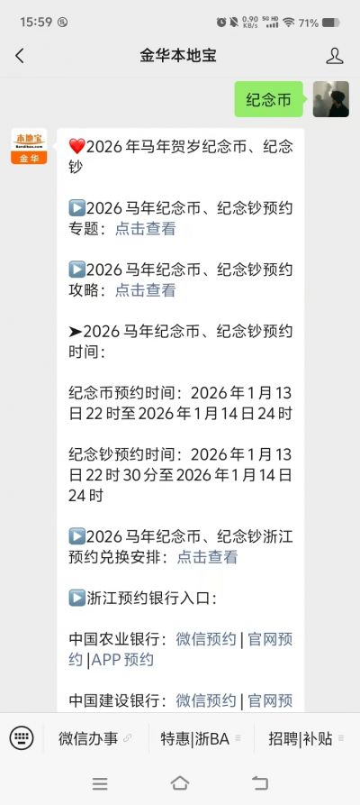 温馨提示:扫描上方二维码关注【金华本地宝】公众号,关注后在对话框回复【纪念币】即可获取2026马年贺岁纪念币及纪念钞浙江预约入口、预约时间、预约银行、预约安排、兑换时间、所需证件、发行公告等更多信息。